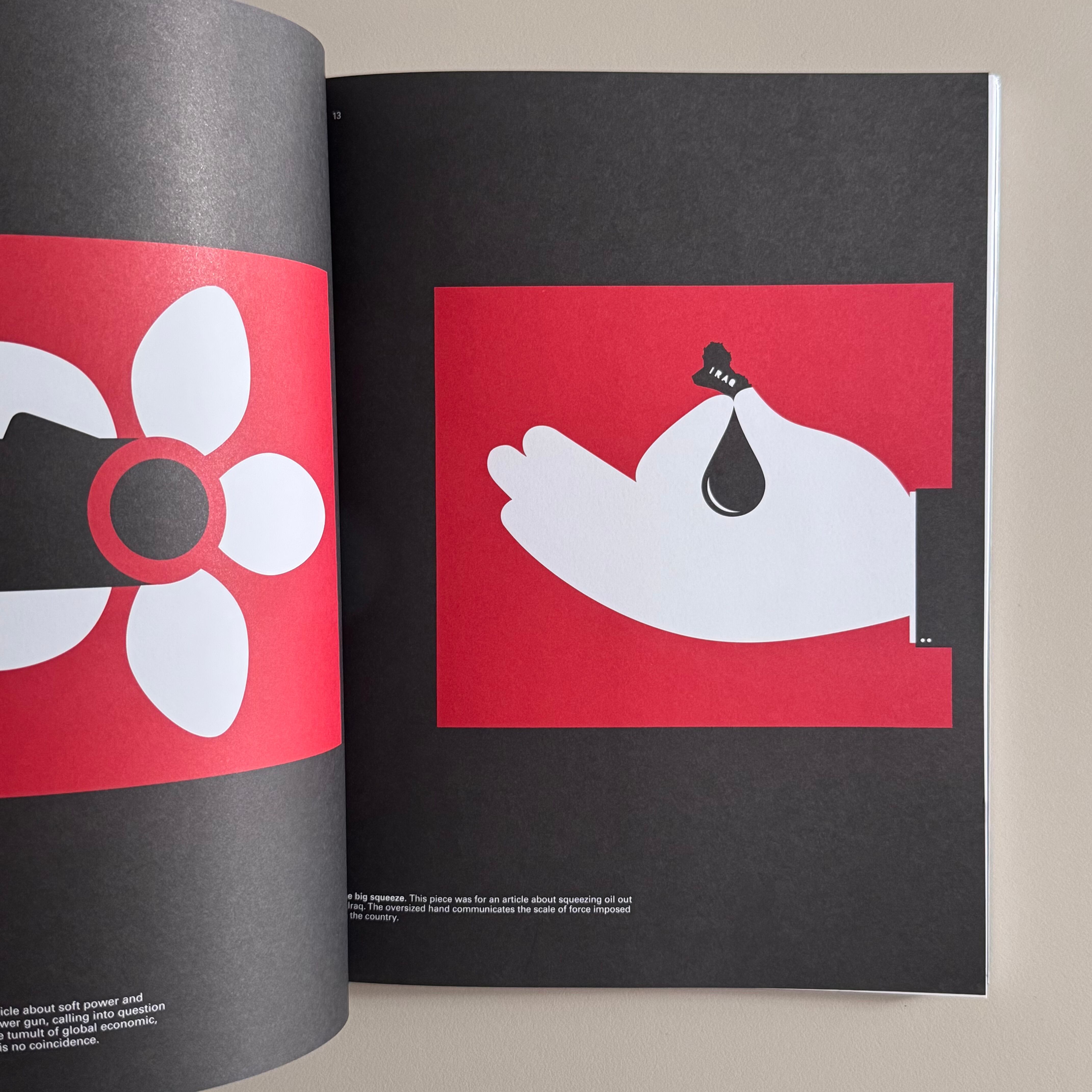 イスラエル出身のグラフィック・アーティスト/イラストレーターのノーマ・バーの作品集です。自分のルーツももしかしたらあるのかもしれませんが最初の方のページに「世界でもっとも過酷な現実を、受け入れやすい形にすること」と書いていて、これが彼のやっている仕事の大義名分なんだなと思いました。社会の構造や状況を受け入れやすい形にしてみんなの心に落とし込むのが。だからこそ風刺が効いた作品でなんともかっこいいポリシーだ。