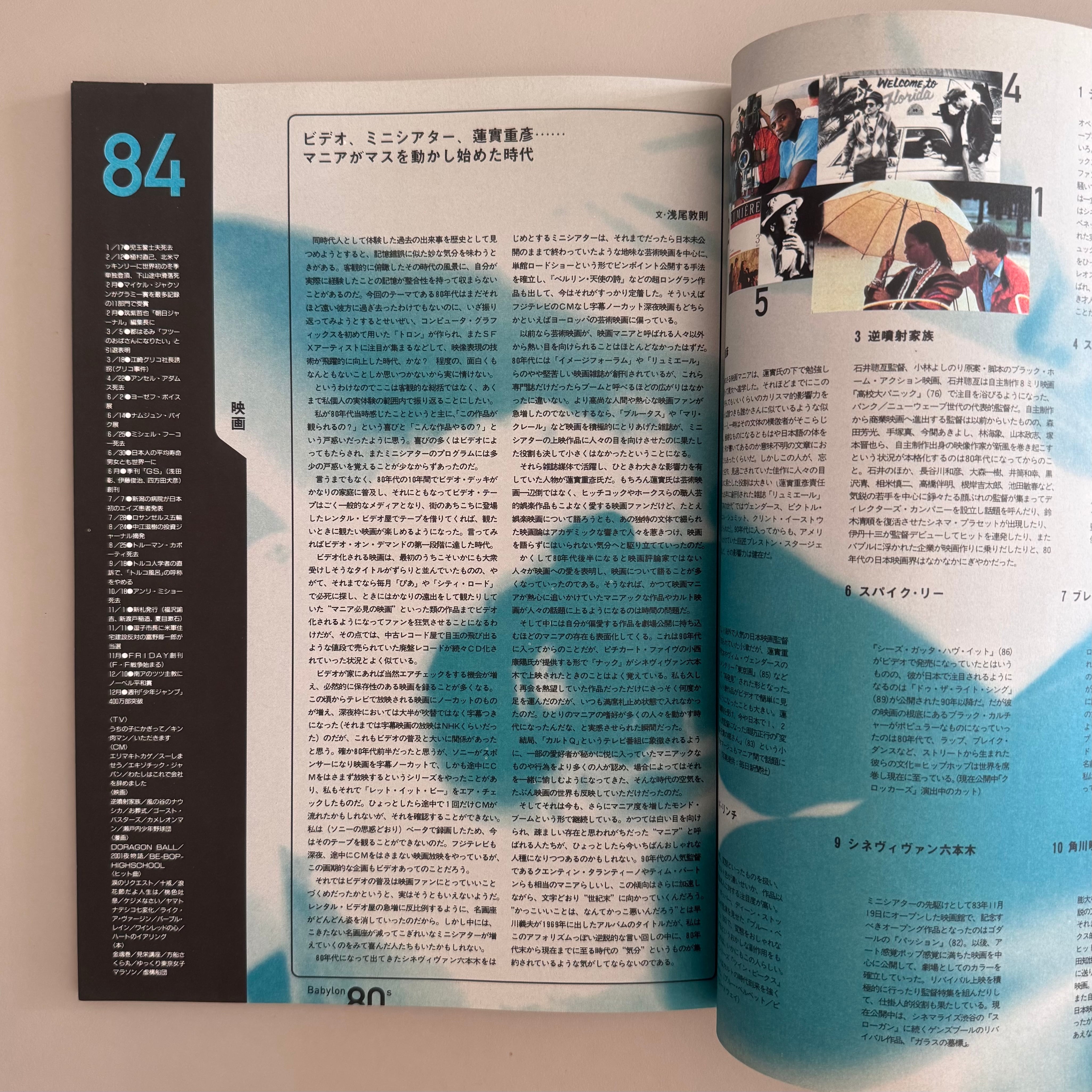 これはこれは…今の時代なかなか重宝されそうな雑誌で。これ一冊で色んな人にいい顔出来そうな内容でした。80年代といえば戦後というイメージも薄れ右から左へ思想も流れていく時期なのだろうか、当時様々な前衛的な表現が出てきた。川久保さんもだろう、村上春樹然り、各業界に色んな天才が現れた。この雑誌だと「哲学」ていうジャンルも振り返ってまとめてるから、いや、よく考えたらそら当時流行った思想観念ももちろんカルチャーだから大切なことだよね。アート、文学、写真、メディアなどこれ一冊で今知りたい80年代がたくさん。これを見て思ったのはサブカルでリバイバルが起きてもまだ隠れているサブカルチャーが結構あるんでそんなもの漁り出したらもっと楽しくなりそうなメモが止まらない一冊でした。
