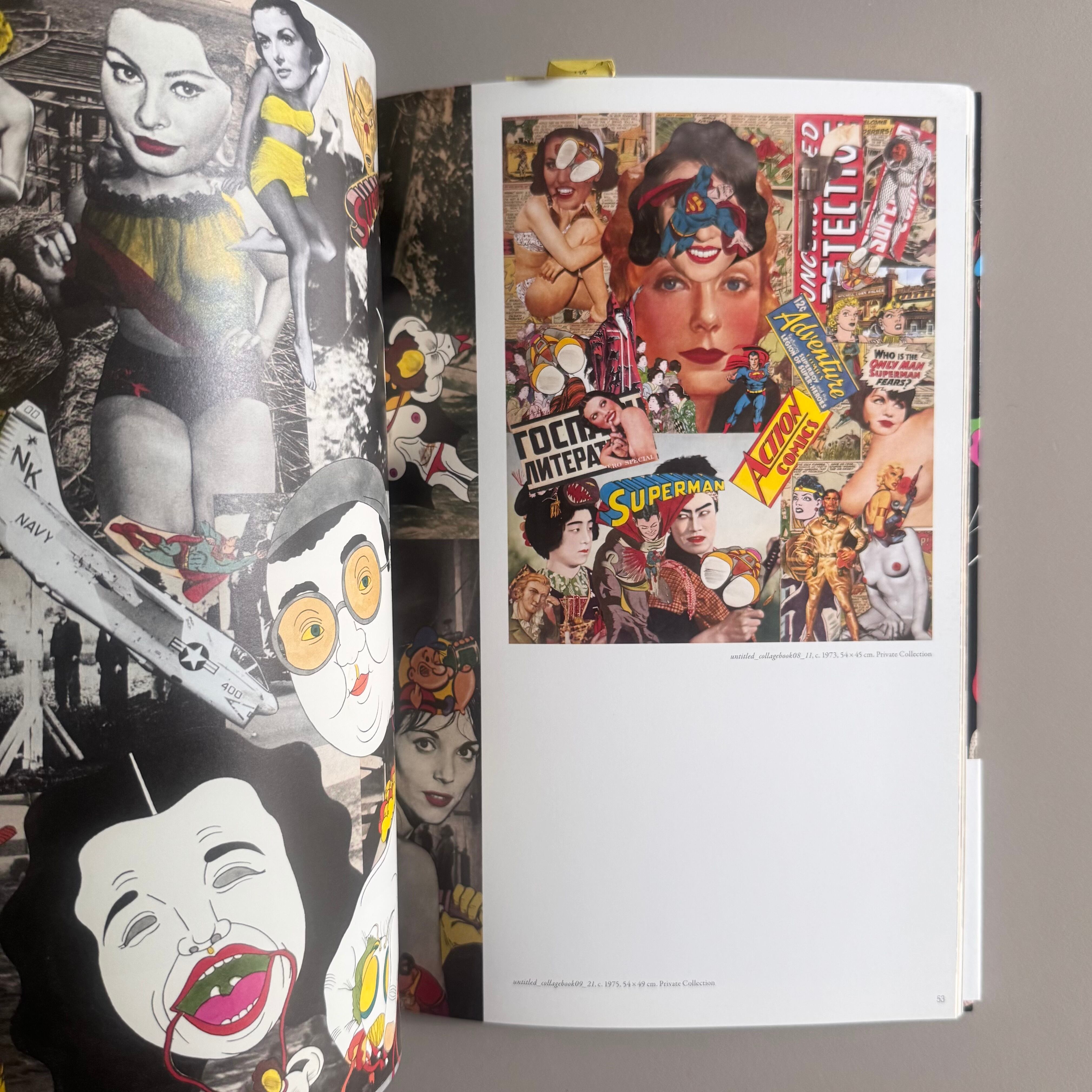 やっぱり田名網さん本人のお話を読んでいても幼少期に見た戦争の影響がとても多いのは伝わってくる。僕の勝手なイメージなんですけど(※僕は何かを見る時勝手なイメージが大切だと思っているので)、戦時中上からやってきた戦闘機が落とした爆弾、それによってベッコリと穴が空いてしまった日本という国に植え付けられたアメリカのアイデンティティ。そんなような幻想がモクモクと煙のように浮かんでくる日本と異国の文化が意識もないままごちゃ混ぜになったような景色を描いているような世界観を感じ取ってしまいます。小さい頃から世界を見渡す時にまるで絵を描くように付け足したり消していったりしていそうな。何だか、上からポタポタと流れてくるような表現というよりかは下から一気に湧き上がってくるエネルギーを感じて、いつも田名網さんの絵を見ると燃え盛るようなパワーを感じますね。相変わらず物凄いカラーリングだな。