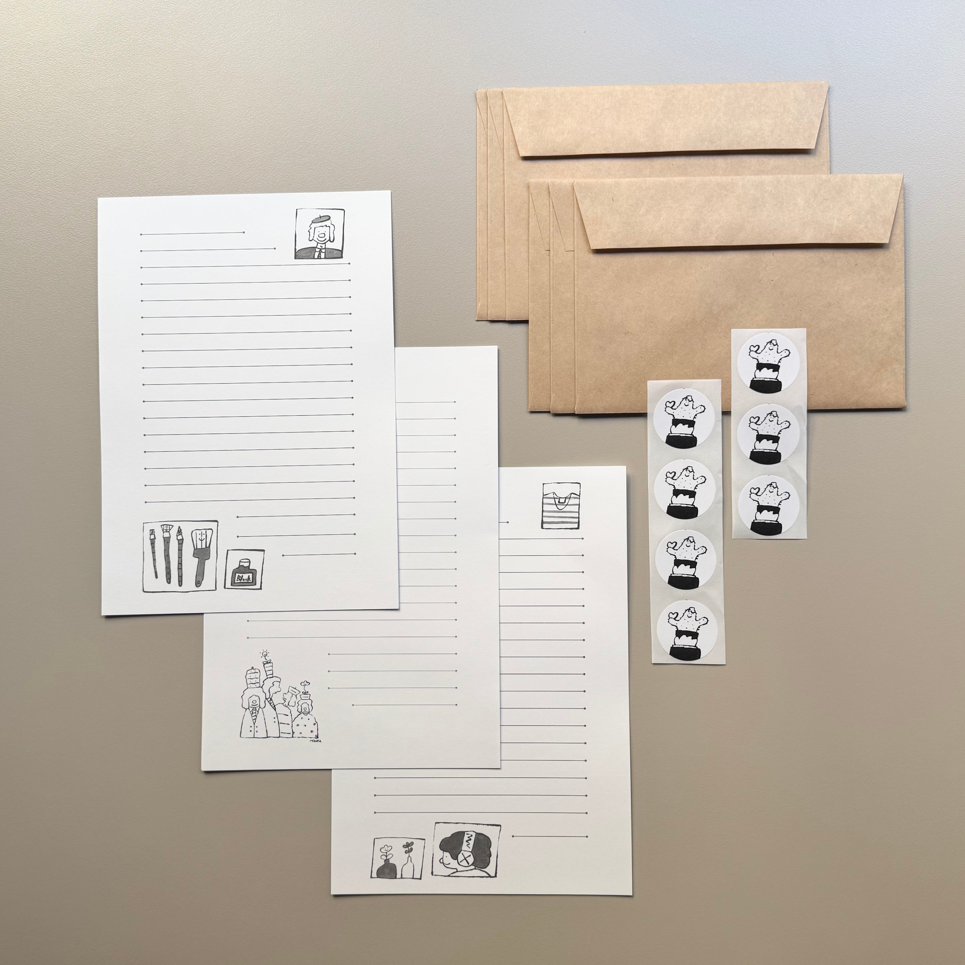 Writing paper: A5 (14.8 cm × 21.0 cm), 3 designs, 3 sheets each / 9 sheets total